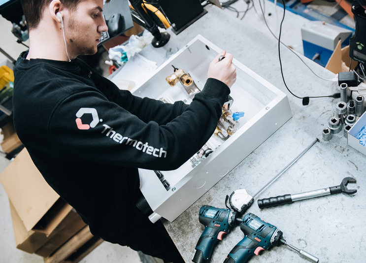 Thermotech Prefab är våra färdigmonterade golvvärme-, tappvatten- och radiatorskåp för olika behov. Vi har ett stort antal färdiga grundmodeller av våra skåp, men levererar ännu mer av objektsanpassade speciallösningar. Med beredning, montering och tillverkning i samma fabrik kan vi kostnadseffektivt och med kort ledtid prefabricera kundanpassade lösningar i både små och stora serier.