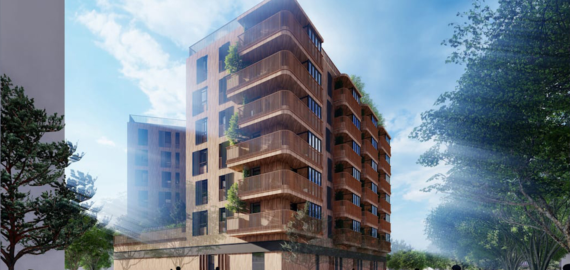 Nybyggnad av två flerbostadshus på 15 respektive 7 våningar med totalt 106 lägenheter i det nya området Godisfabriken i Gävle.