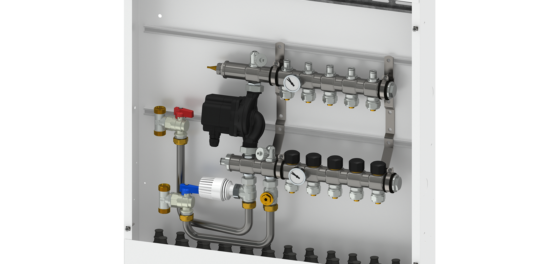 Ett alternativ vid installation av golvvärme i flervåningshus är att använda sig av mindre shuntar för varje våning eller lägenhet. Thermotech erbjuder en komplett prefabricerad lösning för flervåningshus där denna lösning används.